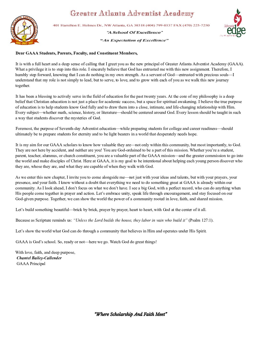 Why Greater Atlanta Adventist Academy? Commitment to Excellence!